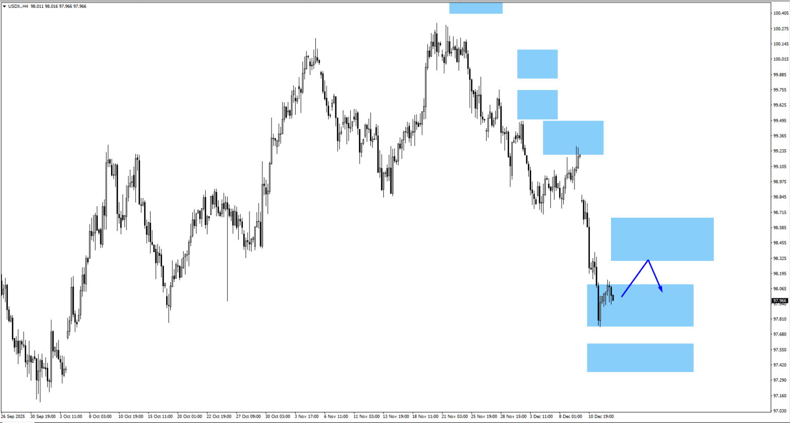 The US dollar enters the week on the defensive, with the USD Index finding support near 97.90. Last week’s price action reflected growing conviction that the Fed may need to ease further as labour conditions soften.