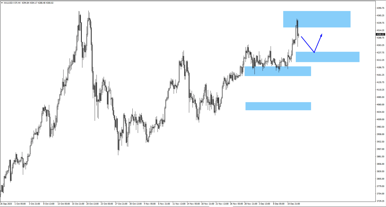 - Gold retreated from 4,360 and now consolidates near 4,220.